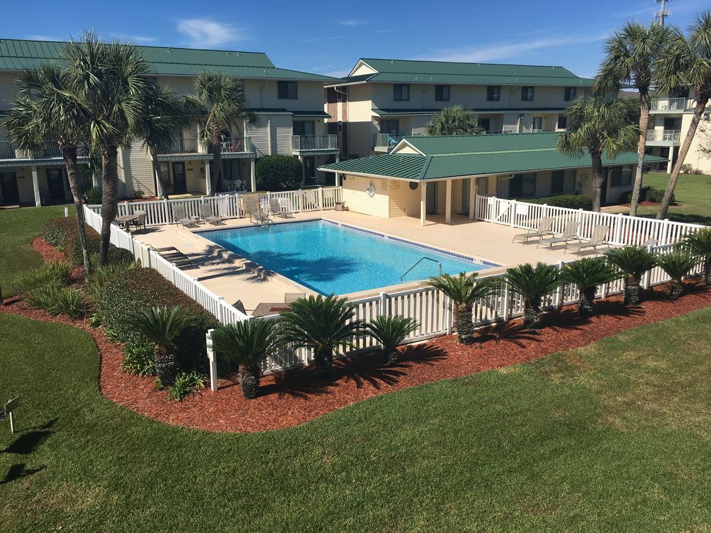 This quaint condo is just a short walk to the beach. Miramar Beach/Destin is overflowing with attractions and great restaurants. Located right behind Pompano Joe's Seafood Restaurant on the beach! Patio overlooks pool and lush, tropical gardens. Palm trees at your doorstep. Great place to relocate to!!!